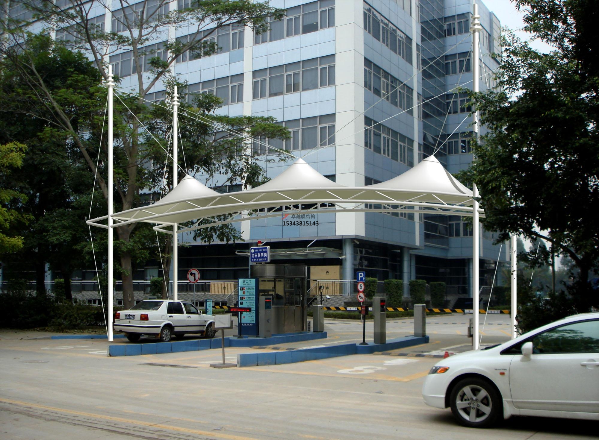 4、能源損耗低,商業廣場雨棚搭建停車棚的膜材有比較高的反射性以及較低的光吸收低,并且熱傳導性比較低,在很大程度上阻止太陽能進入到室內,另外膜材半透明性保證適當自然漫散射光照明室內。