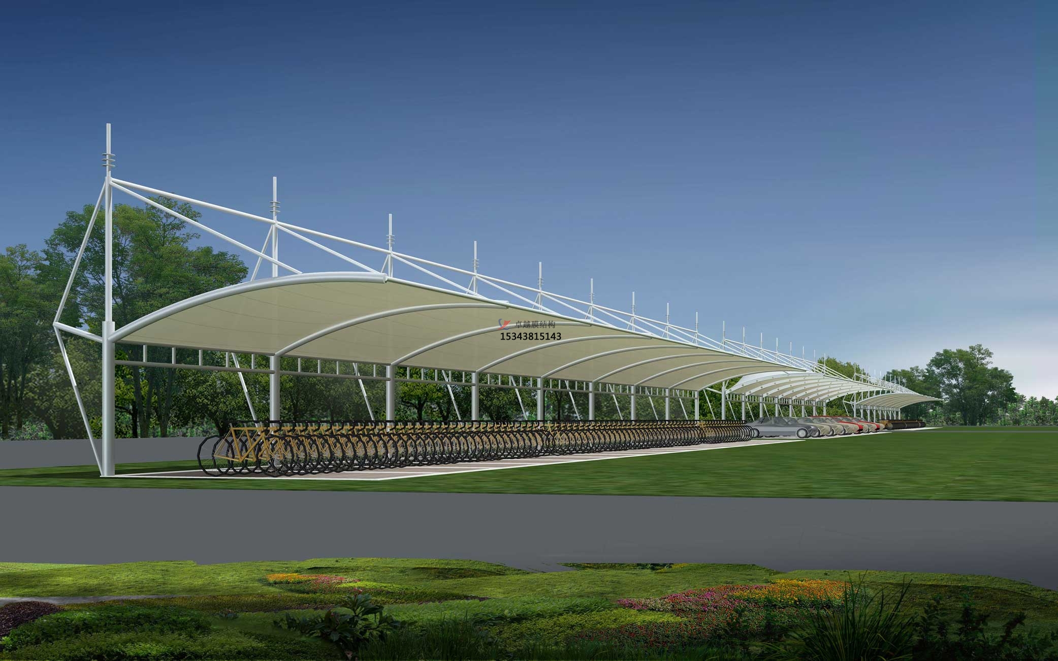 結構形式:骨架式張拉膜車棚