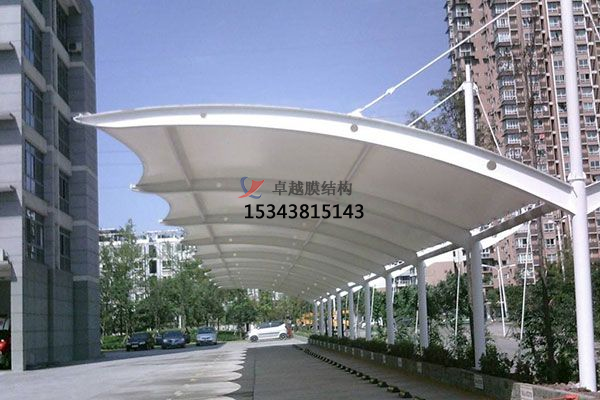 南陽電動車充電膜結構遮陽棚是一種新型的環保節能建筑,它采用高強度膜材料作為結構支撐,具有輕便、強度高、防水、防曬、隔音、隔熱等特點。