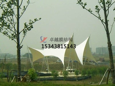 景觀膜結構遮陽棚膜結構所用的膜材料為具有***、阻燃、耐久、自潔等特性的***復合材料,一般由基布和涂層二部分組成?;贾饕捎?**聚脂纖維或玻璃纖維絲編織而成,有平織和絞等多種編織方法,不同的膜結構車蓬編織方法影響著膜材料的經緯向力學性能指標,***膜的抗拉強度和抗撕裂強度等;涂層材料主要有聚四氟乙烯和聚氯乙烯,在一定程度上提高了膜材料各項強度指標,為提高膜材料的耐久、自潔等特性,表面往往有一層氟涂層或硅涂層,***膜材料的耐火、耐久及防水、自潔等性能,決定著膜材料的物理特性。