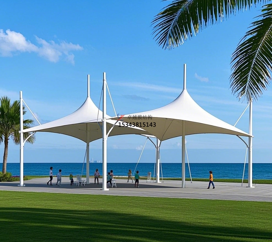 膜結構景觀亭放置在公園的開闊草坪、花壇中央等顯眼位置,成為公園的標志性景觀。其多樣的造型,如傘狀、蘑菇狀、飛鳥狀等,吸引著游客的目光,成為公園的視覺焦點。亭內設置的座椅、茶幾等休閑設施,供游客休息、交談,部分景觀亭配備的照明設備,在夜間亮起,將景觀亭裝點得格外美麗,成為公園亮化景觀的一部分,為公園增添浪漫氛圍。