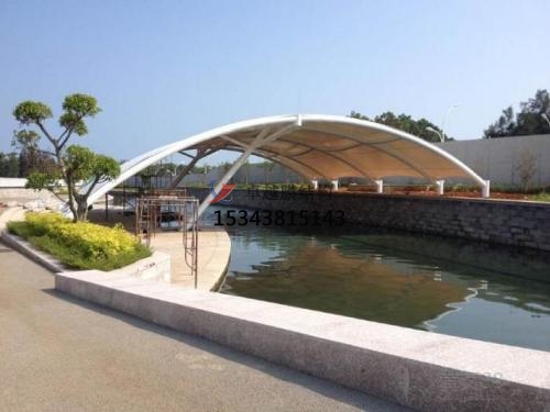 一方面,膜結構景觀適合覆蓋大跨度空間。膜結構景觀中所使用的膜材料每平方壹公斤左右,由于自重輕,加上鋼索、鋼結構高強度材料的采用,與受力體系簡潔合理——力大部分以軸力傳遞,故使膜結構景觀適合跨越大空間而形成開闊的無柱大跨度結構體系。