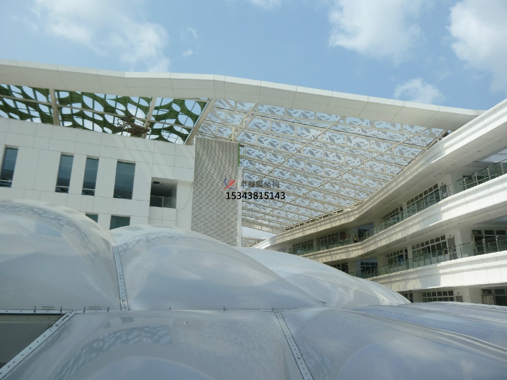 因為七臺河ETFE膜結構有很高的透光率,那么在膜結構工程中的應用是怎樣的呢?膜結構建筑是近幾十年發展起來的一種采用新型材料的全新結構形式,因其特有的優點成為建筑行業的一枝獨秀。而ETFE建筑膜材作為膜結構的新興膜材,以其優越的材料特性將成為我國建筑膜材市場的主力軍。