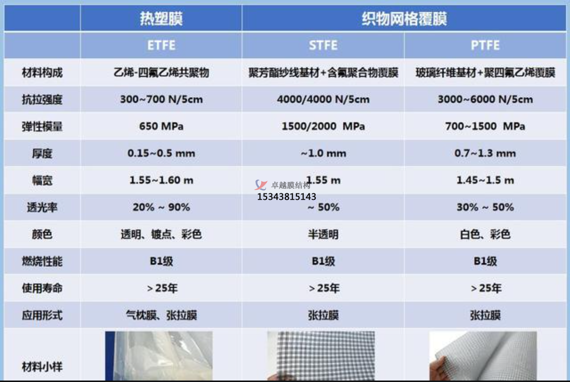 在建筑和結構的方案設計階段,選擇高透光率的膜材時,常常會對不同種類膜材的特點把握不準。將ETFE、STFE、PTFE高透膜的各自特點進行對比,為高透膜的選擇提供有理有據的技術支撐。