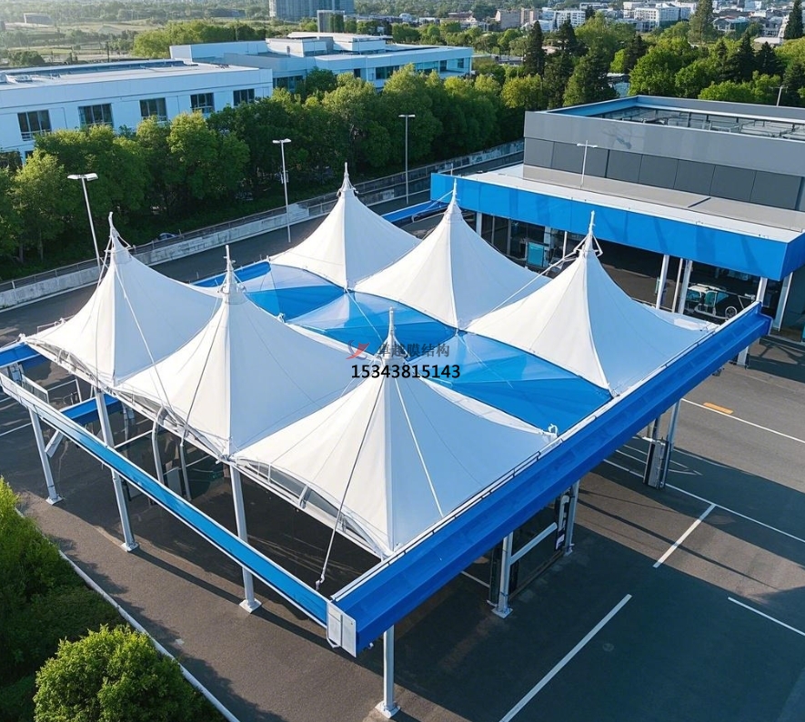 后期維護成本:膜結構雨棚維護成本極低。膜材自潔性能使雨棚表面不易積垢,一般每年僅需 1 - 2 次簡單清潔檢查即可保持外觀整潔。同時,膜材與支撐結構耐久性好,正常使用下很少損壞,降低維修成本。反觀傳統結構雨棚,需定期進行油漆保養、結構檢測等維護工作,成本較高。例如,某傳統鋼結構加氣站雨棚每年維護費用高達數萬元,而采用膜結構的同類型雨棚,年維護成本僅幾千元。