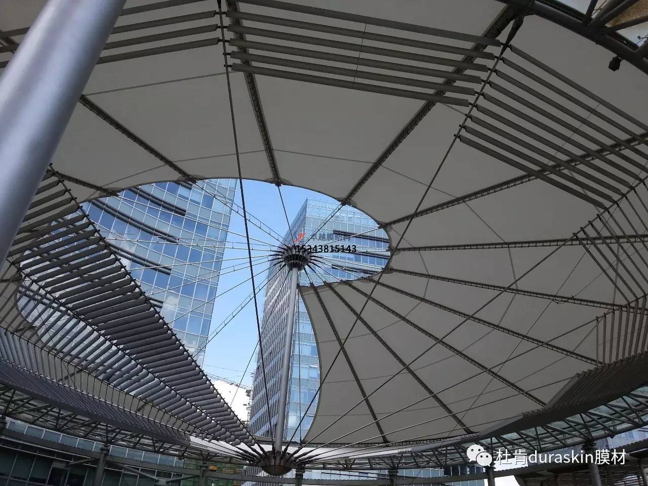 膜結構遮陽棚具有全面的外遮陽功能,能夠徹底阻擋紫外線的輻射,降低室內溫度,減少空調負荷;在遮擋炎炎夏日的同時,能夠使強烈的陽光以漫射光的形式反射入室內,使室內光線明亮而不眩目,并且不影響從室內看出的窗外景觀,將人們的生活空間從室內延伸到室外,創造出了新的居住空間。