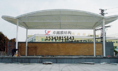 ?。?)充氣商業廣場雨棚搭建,即薄膜的剛度由空氣壓力供給。一般兩種方式:①以室內氣壓支承膜材的氣承式商業廣場雨棚搭建。②充氣于特定形狀的關閉囊內,使之構成具有必定剛度的結構或構件的氣肋狀商業廣場雨棚搭建。