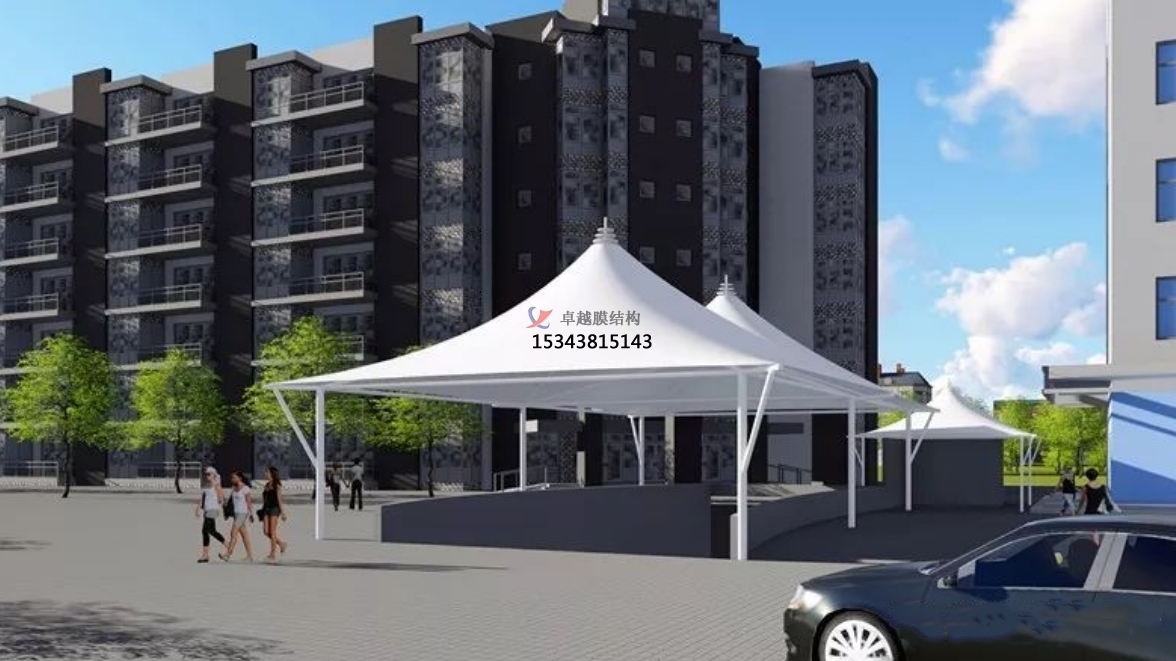 4、坡道雨棚材料選擇廣:關于雨棚篷布材料,有多種膜結構材料可以選擇,常見的有PVDF、PTFE、ETFE等,每種材料結構都有不同的性能特點;
