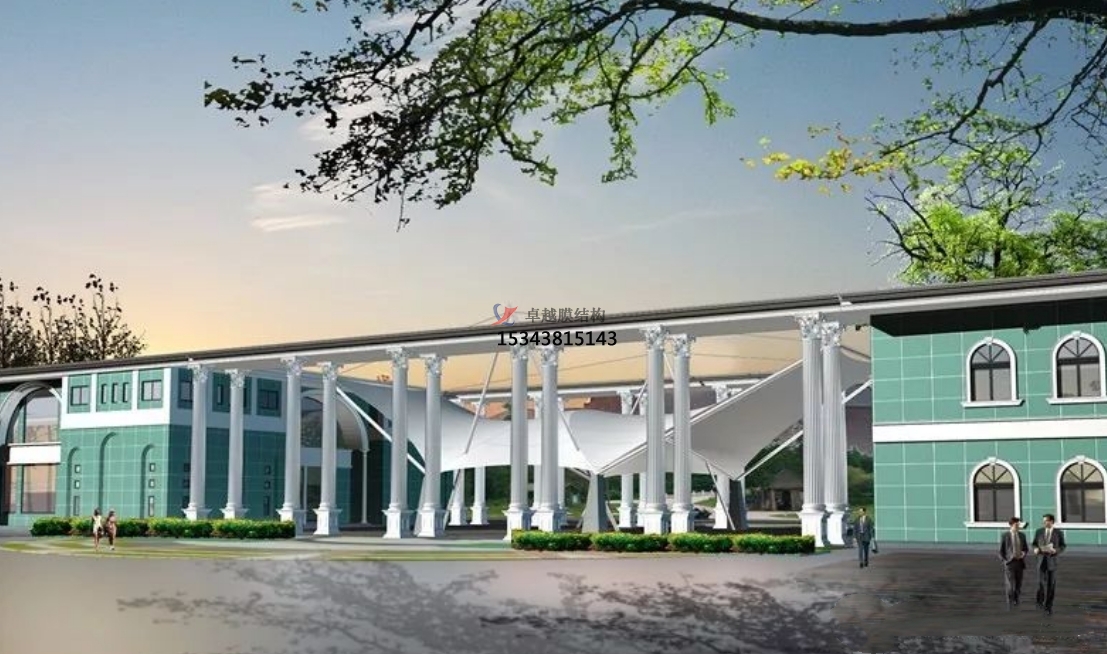 膜結(jié)構(gòu)大門作為建筑或景區(qū)入口,用來遮風擋雨,也是景區(qū)的臉面,是景區(qū)神韻的表達,不僅要求其造型新穎,有創(chuàng)意,而且還要考慮建造材質(zhì)。