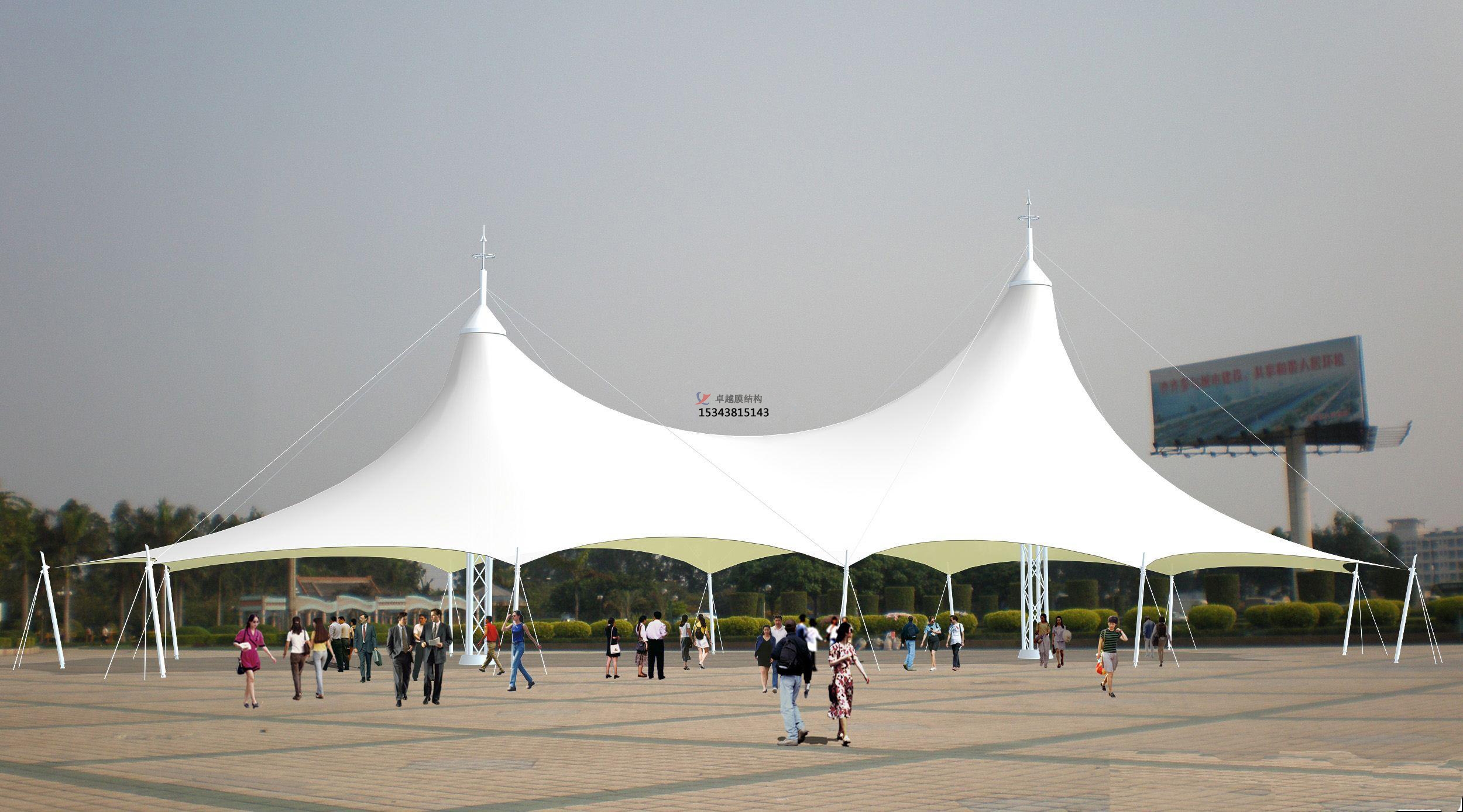 膜結(jié)構(gòu)景觀是建筑結(jié)構(gòu)中更新發(fā)展起來的一種形式,它以性能優(yōu)良的織物為材料,或是向膜內(nèi)充氣,由空氣壓力支撐膜面,或是利用柔性鋼索或剛性支撐結(jié)構(gòu)將面繃緊,從而形成具有一定剛度、能夠覆蓋大跨度空間的結(jié)構(gòu)體系。自從上世紀(jì)七十年代以來,膜結(jié)構(gòu)景觀在國外已逐漸應(yīng)用于體育建筑、商場(chǎng)、展覽中心、交通服務(wù)設(shè)施等大跨度建筑中。膜結(jié)構(gòu)景觀已成為結(jié)構(gòu)設(shè)計(jì)選型中的一個(gè)主要方案。