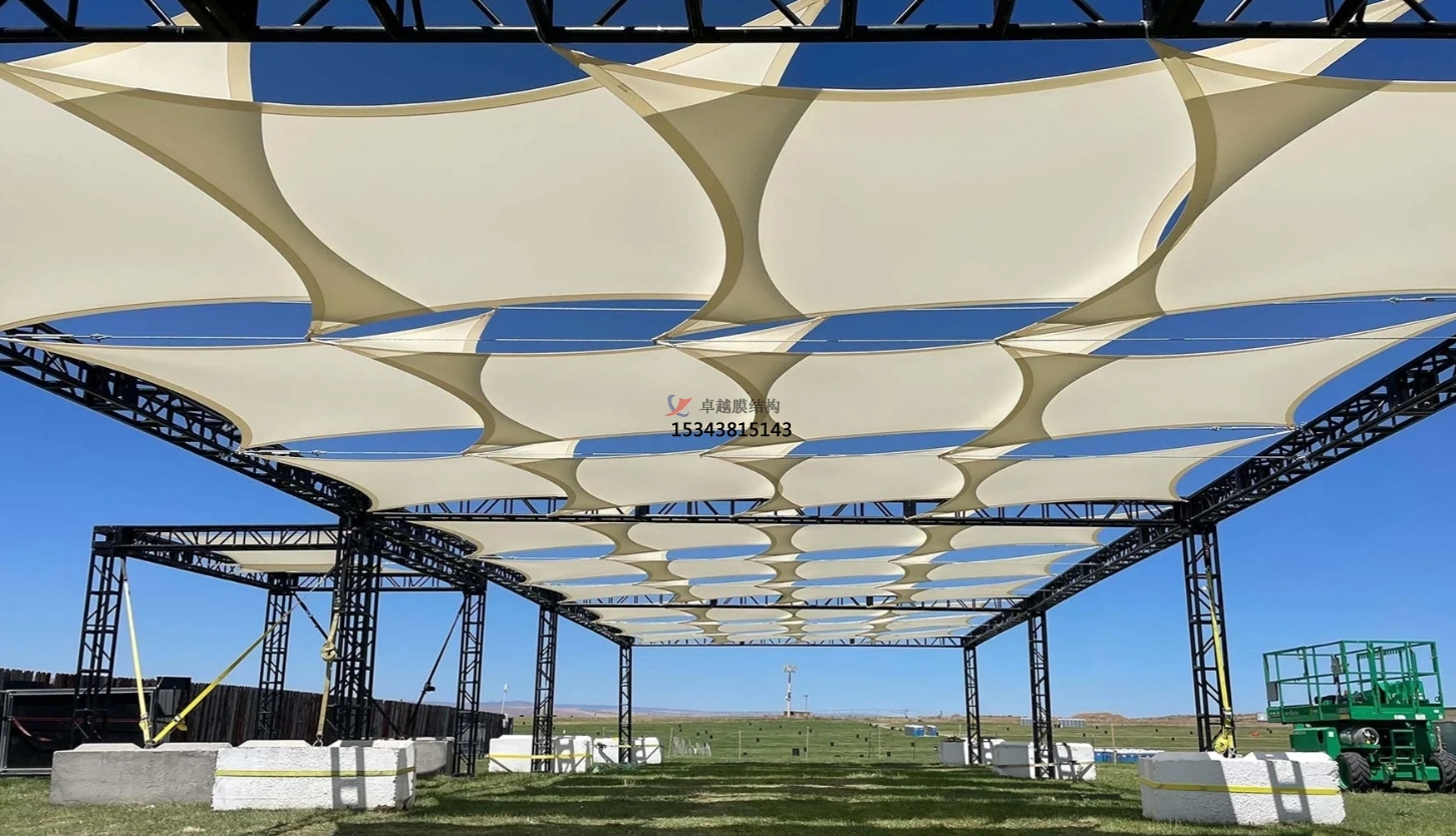 膜結(jié)構(gòu)具有出色的環(huán)境融合性。在公園的自然環(huán)境中,白色的膜材與翠綠的樹木、湛藍(lán)的天空相互映襯,相得益彰。它不會(huì)突兀地破壞自然景觀,反而像自然生長(zhǎng)出來(lái)的一部分,巧妙地融入其中。在廣場(chǎng)這樣的城市空間,膜結(jié)構(gòu)又能結(jié)合周邊的建筑風(fēng)格,以現(xiàn)代感十足的造型為城市增添活力,成為城市景觀的有機(jī)組成部分。無(wú)論是在古典風(fēng)格的廣場(chǎng)周邊,還是在充滿現(xiàn)代氣息的公園內(nèi),膜結(jié)構(gòu)都能找到與之契合的設(shè)計(jì)方案,和諧共生。