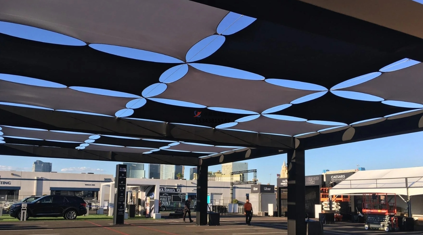 膜結(jié)構(gòu)突破了傳統(tǒng)建筑的刻板印象,擁有豐富多樣的造型。在廣場(chǎng)上,它可以是巨大的傘狀結(jié)構(gòu),為人們提供廣闊的遮陽(yáng)空間,那流暢的曲線,仿佛是被風(fēng)吹拂的裙擺,輕盈而優(yōu)雅;在公園中,膜結(jié)構(gòu)又能設(shè)計(jì)成靈動(dòng)的波浪形,與周圍的綠樹、草坪相呼應(yīng),如同起伏的綠色海洋中涌起的白色浪花,成為視覺(jué)焦點(diǎn)。其造型既可以簡(jiǎn)潔大氣,展現(xiàn)現(xiàn)代都市的簡(jiǎn)約風(fēng)格,又能通過(guò)復(fù)雜的曲面組合,呈現(xiàn)出獨(dú)特的藝術(shù)韻味,滿足不同場(chǎng)所的設(shè)計(jì)需求。