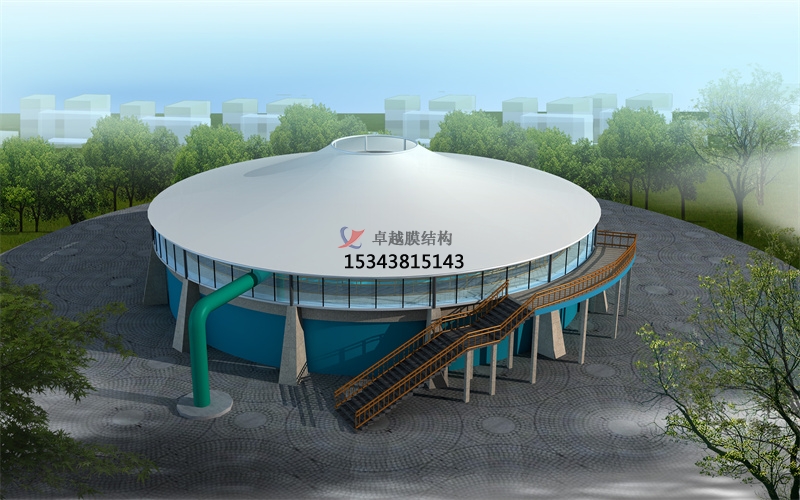 簡介:污水池膜結構加蓋技術通常采用鋼支撐反吊UV膜結構,它的巧妙之處在于“反吊”,采用了抗腐蝕能力很強的UV膜材(氟碳纖膜)把廢氣罩住,鋼結構在外面將膜懸吊,這種加蓋工藝可以解決鋼結構由于與腐蝕性氣體接觸而帶來的腐蝕問題,發揮了鋼結構的性能,實現了結構骨架與覆蓋材料的完美結合。