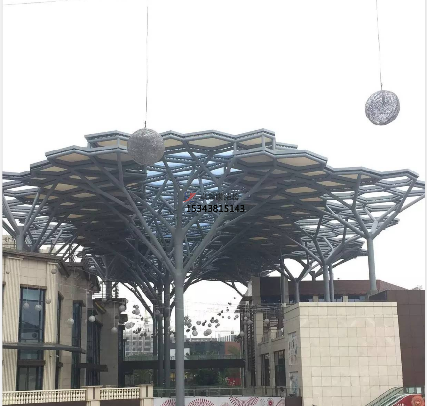 1)張拉式膜結構。這也是現在比較常見的一種,主要以膜材、鋼索及支柱構成,是更能夠展現出膜結構創新美觀造型的形式。