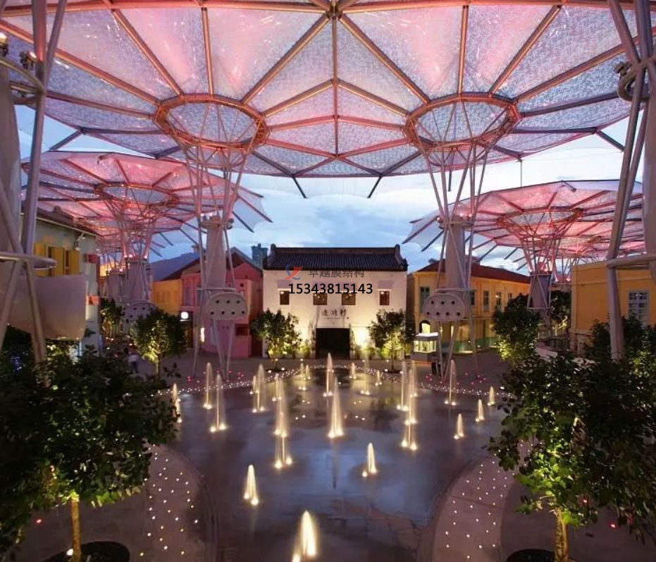 3、多功能性:除了遮陽(yáng)功能外,膜結(jié)構(gòu)遮陽(yáng)棚還可以作為陽(yáng)雨棚、涼亭、連廊等使用。其構(gòu)思獨(dú)特、因地制宜的設(shè)計(jì),使得遮陽(yáng)棚在賦予景觀小品藝術(shù)化的同時(shí),也將功能實(shí)用性融入其中,提升了游樂(lè)場(chǎng)的整體品質(zhì)。