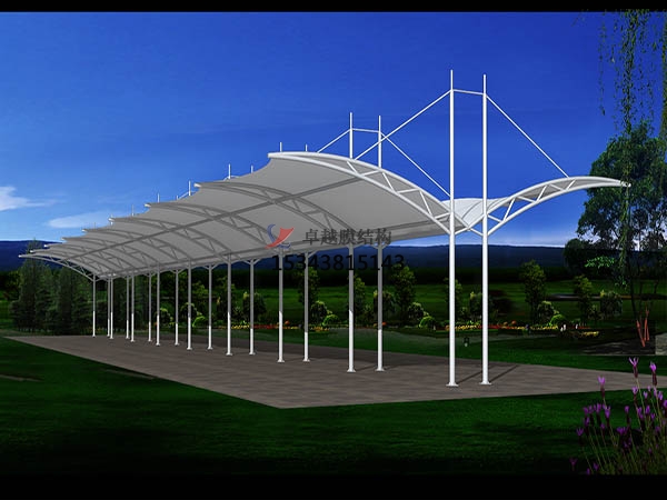 目前國內大部分膜結構工程使用的都是聚酯纖維膜材料,即PVC聚酯纖維膜材,表面涂以PVDF聚氟化合物,增強了原有PVC膜材耐污染、抗老化的性能,膜材使用壽命增加到10-15年。聚酯纖維是膜建筑中應用更廣泛的纖維,并認為是建筑膜材標準產品。聚酯纖維拉伸強度高,彈性好。在拉伸屈服前,纖維具有較大的伸長變形能力,使得在安裝時可進行一定的調整。但日照將使聚酯纖維老化,彈性與強度等力學性能降低,所以很多建筑采用PTFE、ETFE等永久性膜材。