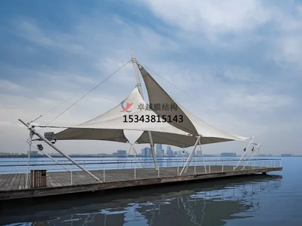 建筑入口使城市公共空間與建筑空間相鄰的界面,成為城市空間的組成部分。它是人們視覺更先接觸的部分,因此,除了功能以外,還應有很強的標識性,并能體現建筑的個性,是建筑環境和城市景觀的重要組成部分。由于張拉膜獨特的造型是其他結構類型無法比擬的,故成為近來建筑入口經常采用的形式。利用張拉膜輕巧,別致的造型建造各種半封閉,全封閉的不行空間,使其形成全天候的 建筑空間,提供防風雨,防日曬等人工環境,并有較好的標識招攬效果,因此是步行街改造和新建的選擇。