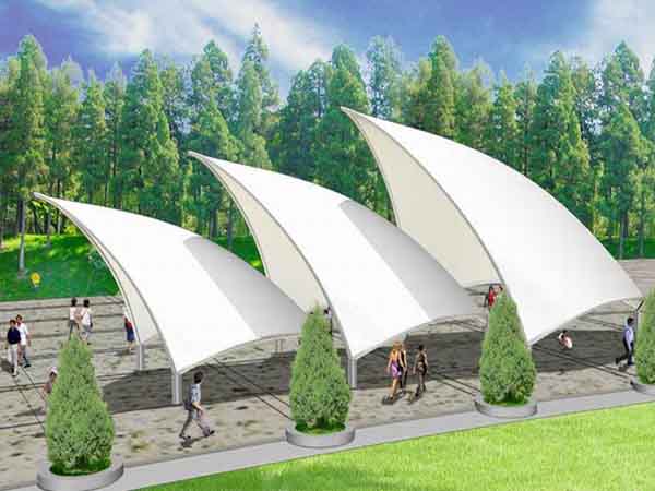 5、膜結構以造型學、色彩學為依托,可結合當地自然條件及民族風情,設計出屬于自己獨特結構,使得成為一道亮麗的風景線。并且經濟性較實用、采用膜結構會有很大的優勢,其成本只相當于傳統棚的二分之一左右,而且膜結構能夠拆卸,易于搬遷。表面涂有聚四氟乙烯涂層,不易附著灰塵,依靠雨水沖洗就能保持潔凈。