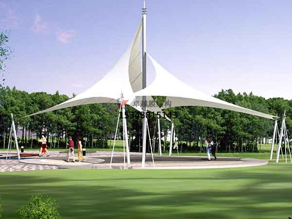 2、膜結構它是一種建筑與結構完美結合的結構體系,是用高強度柔性薄膜材料與支撐體系相結合形成的具有一定剛度的穩定曲面,能承受一定外荷載的空間結構形式。更好的膜結構設計是結構與外形的有機融合,使其顯得了類拔萃,同時與自然環境、歷史及現代的城市景觀有機結合。輕型結構可以看成是大型的雕塑作品,可為其周邊空間增添活力,成為周圍環境的補充和焦點 。
