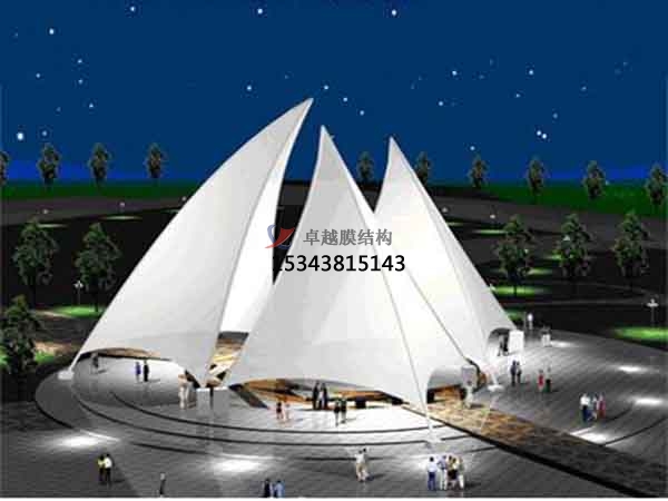 膜結構建筑排水設計依可然采用無組織排水或有組織排水方式。由于膜結構建筑的造型奇特,自由曲面,應充分考慮造型與排水的合理方式。膜結構排水坡度要求大于一般建筑。平膜坡度15%~20%以上,雙曲膜脊度應大于10%。同時膜面預張力1.0~2.0kN/m以上,避免膜材在雨水作用下發生較大變形,從而在膜面產生積水、兜水。