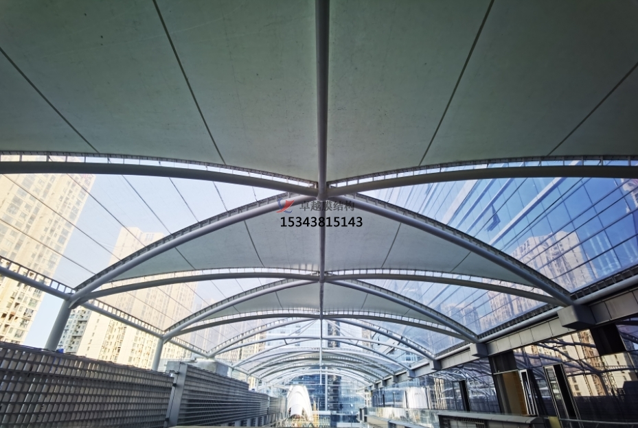 商業街膜結頂棚,普通指的是裝置在商業街頂部的膜結構建筑,為逛街的人們起到遮陽擋雨的作用。