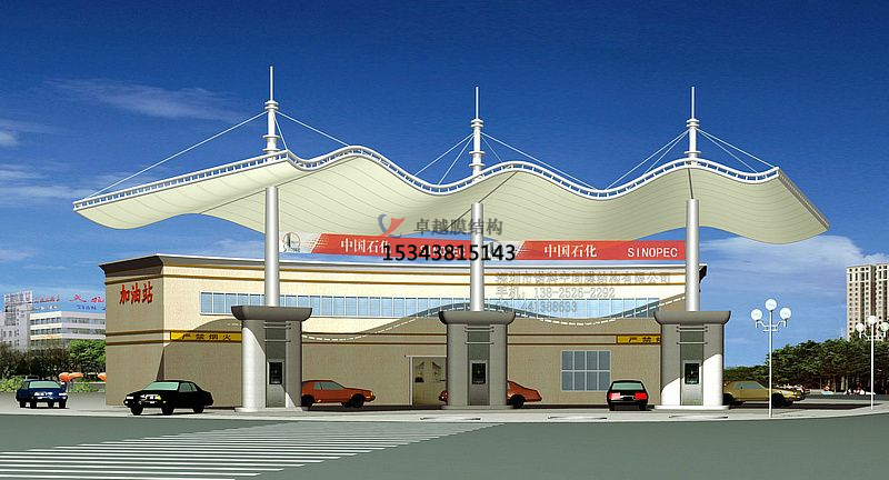 加油站罩棚是加油站的重要組成部分,設計加油站罩棚不僅僅要具有牢固、省電、防水等功能,還要美觀大方呢。膜結構輕巧、別致的造型在停車場及候車廳的建設中擔當了重要角色,除了滿足防風雨、防日曬等基本功能外,并有較好的標識招攬效果,展現(xiàn)了人們個性化的一面。