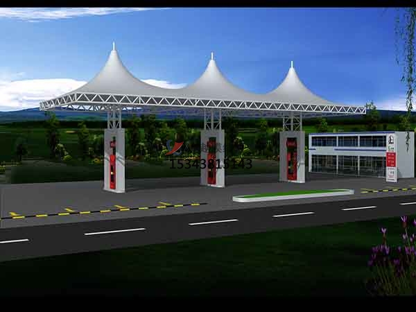 加油站膜結構,荷載態分析:張拉膜結構自身重量很輕,僅為鋼結構的1/5,混凝土結構的1/40;因此膜結構對地震力有良好的適應性,而對風的作用較為敏感。此外還要考慮雪荷載和活荷載的作用。