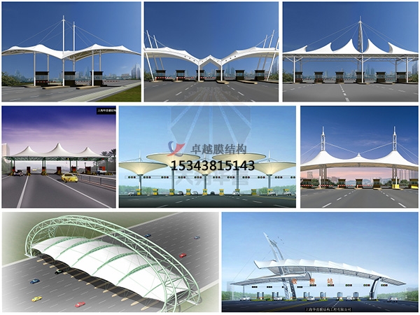 收費站頂棚運用膜結構來設計建造十分可取,收費站廣場空間跨度大,屬于開放空間,通過膜材料結合鋼柱支撐的膜結構能使用收費站整體環境起到美化作用。同時膜結構具備功能上的諸多優點,相信不久的將來,收費站膜結構頂棚會越來越常見。