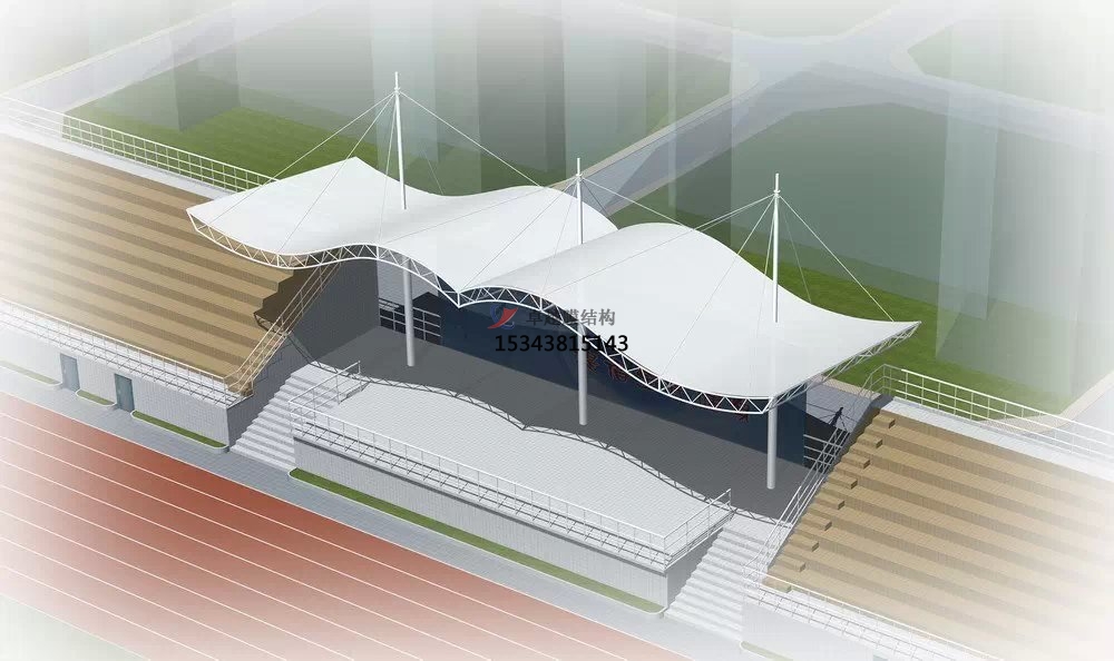 張拉膜看臺主要用于各類地方體育場主席臺雨棚,各類學校體育場看臺雨棚遮蓋,我公司是國內較早從事大懸挑張拉膜結構看臺設計施工的專業廠家,下面介紹一下我們在荊門周邊縣市完工的一些張拉膜看臺設計施工案例,我公司先后在荊門周邊承接了荊門市東寶中學看臺雨棚、荊門職業學院張拉膜張拉膜看臺罩棚、荊門市第中學張拉膜看臺遮陽棚張拉膜看臺遮陽棚等設計施工項目,簡介如下: