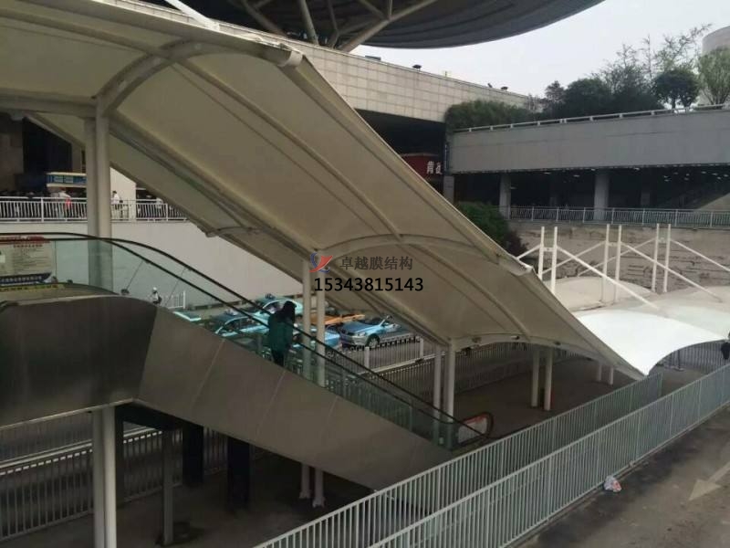 地鐵入口使城市公共空間與建筑空間相鄰的界面,成為城市空間的組成部分它是人們視覺更先接觸的部分,因此,除了功能以外,還應有很強的標識性,并能體現建筑的個性,是建筑環境和城市景觀的重要組成部分。由于膜結構獨特的造型是其他結構類型無法比擬的,故成為近來建筑入口經常采用的形式。