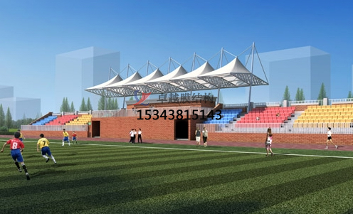 體育場看臺遮陽棚,膜結構看臺的設計主要包括體形設計、初始平衡形狀分析、荷載分析、裁剪分析等四大問題。通過體形設計確定建筑平面形狀尺寸、三維造型、凈空體量,確定各控制點的坐標、結構形式,選用膜材和施工方案。初始平衡形狀分析就是所謂的找形分析。由于膜材料本身沒有抗壓和抗彎剛度,抗剪強主芤很差,因此其剛度和穩定性需要靠膜曲面的曲率變化和其中預應力來提高,對膜結構而言,任何時候不存在無應力狀態,因此膜曲面形狀終必須滿足在一定邊界條件、一定預應力條件下的力學平衡,并以此為基準進行荷載分析和裁剪分析。目前膜結構找形分析的方法主要有動力松馳法、力密度法以及有限單元法等。膜結構考慮的荷載一般是風載和雪載。在荷載作用下膜材料的變形較大,且隨著形狀的改變,荷載分布也在改變,因此要計算結構的變形和應力要用幾何非線性的方法進行。荷載分析的另一個目的是一確定索、膜中初始預張力。在外荷載作用下膜中一個方向應力增加而另一個方向應力減少,這就要求施加初始張應力的程度要滿足在不利荷載作用下應力不致減少到零,即不出現皺褶。因為膜材料比較輕柔,自振頻率很低,在風荷載作用下極易產生風振,導致膜材料破壞,如果初始預應力施加過高,膜材涂變加大,易老化且強度儲備少,對受力構件強度要求也高,增加施工安裝難度。因此初始預應力的確定要通過荷載計算來確定。經過找形分析而形成的摸結構通常為三維不可展空間曲面,如何通過二維材料的裁剪,張拉形成所需要的三維空間曲面,是整個膜結構工程中關鍵的一個問題,這正是裁剪分析的主要內容。