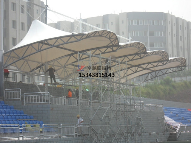 為了抵擋風雪,膜面的外形應使排水通暢使捷,避免在其上形成水兜或雪的堆積。在施加預應力前的安裝成形階段,張拉膜結構對這些荷載十分敏感。為了能將雨水排除,膜材和接縫須密封防水,膜邊緣也進行特殊的細部設計,以防止雨水進入室內。