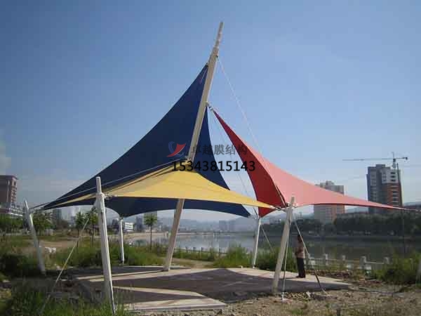 景觀膜結構,讓一層不變的綠色環境,搭建出一個又一個深入人心的膜結構建筑,創造出讓人們盡情享受的快樂空間。充分展示了結構構件清晰受力的藝術之美,它巧妙的整合周圍的環境,給人們一種高貴典雅、浪漫溫馨之感。另外由于膜材料本身特有的顯色性,在夜間彩燈的映射下能形成絢麗繽紛的景觀。不僅為人們提供遮陽避雨的空間。同時,更由于這種生動活潑的造型能給人們帶來時尚、輕松的休閑感受,所以廣受歡迎。
