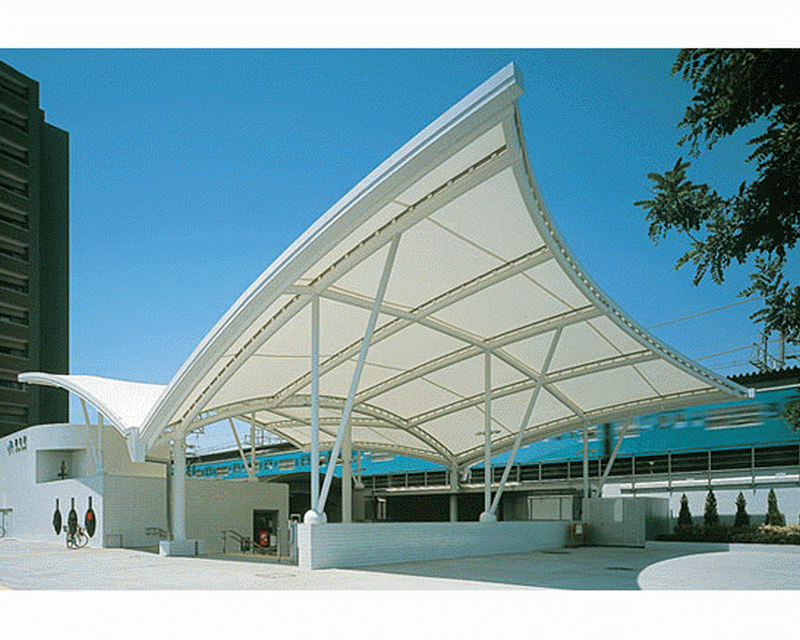 該膜結構建筑的建筑面積為1200平方米,總高度為14.5米。整個建筑由兩個膜結構支架組成,支架之間形成了一個三角形的形狀。膜結構支架采用了高強度鋼材制造,具有耐腐蝕、耐高溫、耐磨損等特點,保證了建筑的耐久性和安全性。膜結構建筑的膜材料采用了高強度聚酯纖維材料,具有輕質、高強、防水、防紫外線等功能,保證了建筑的舒適性和長期使用壽命。膜結構建筑的屋頂采用了張拉膜技術,使得膜材料能夠被張緊,形成一個平整的屋頂表面。