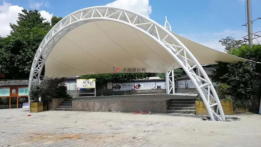 結構設計:根據舞臺的形狀和尺寸,設計合適的膜結構形狀和尺寸,并考慮風載、雪載等外部荷載的影響。