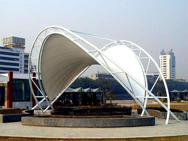 膜結(jié)構(gòu)是一種建筑與結(jié)構(gòu)完美結(jié)合的結(jié)構(gòu)體系。它是用高強(qiáng)度柔性薄膜材料與支撐體系相結(jié)合形成具有一定剛度的穩(wěn)定曲面,能承受一定外荷載的空間結(jié)構(gòu)形式。其造型自由輕巧、阻燃、制作簡(jiǎn)易、安裝快捷、節(jié)能、易于、使用安全等優(yōu)點(diǎn),因而使它在世界各地受到廣泛應(yīng)用。這種結(jié)構(gòu)形式特別適用于大型體育場(chǎng)館、人口廊道、小品、公眾休閑娛樂廣場(chǎng)、展覽會(huì)場(chǎng)、購物中心等領(lǐng)域。