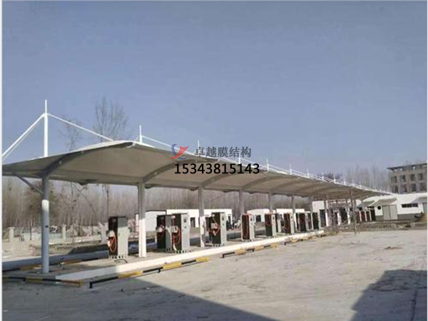 膜結構工程資料選用了進口意大利耐馳計劃修建膜布資料。汽車遮陽車棚立柱骨架,外表都處置選用環氧橡膠底漆,防銹功用能抵達10年,炳烯酸聚氨酯面漆。