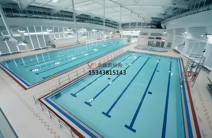 優勢介紹:膜結構游泳館造型豐富多樣。膜結構游泳館以其流線型的外觀和豐富多彩的膜面圖案,成為城市中一道亮麗的風景線。內部空間開闊,無柱式設計不僅提升了視覺效果,更為游泳比賽、訓練及休閑娛樂活動提供了充足的自由度。如杭州游泳健身中心采用波浪型的白色雙層骨架膜結構屋面,能體現出游泳運動特色,成為城市的標志性建筑。膜結構游泳館可以創造出無柱的大空間,使泳池區視野開闊,為游泳者提供更寬敞的活動空間,也便于對游泳館進行功能布局和設施配置。膜結構游泳館采用氣承式膜結構,無需傳統鋼筋混凝土支撐,僅依靠氣壓支撐起整個場館,大幅降低了建筑材料的使用,符合綠色低碳的發展理念。此外,膜材料具有良好的透光性,能充分引入自然光,減少白天對人工照明的依賴,降低能源消耗,實現節能環保。