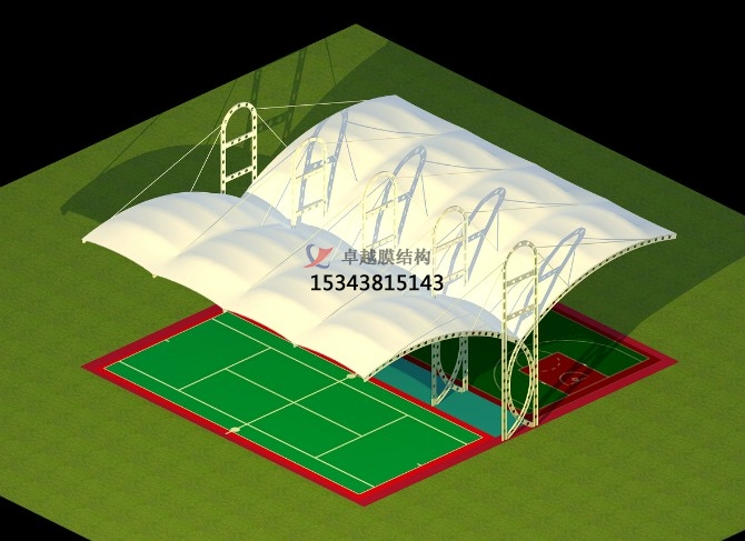 膜結構網球場的所有構件都是完全可見的。它是一種獨特的結構,在設計時要仔細權衡,任何構件的設計都不能隨意修改,因為修改任一構件都將影響整個結構的幾何形狀以及頂應力的平衡。因此,建筑師只有全面深入地了解張拉膜結構體系才能創作出更好作品。