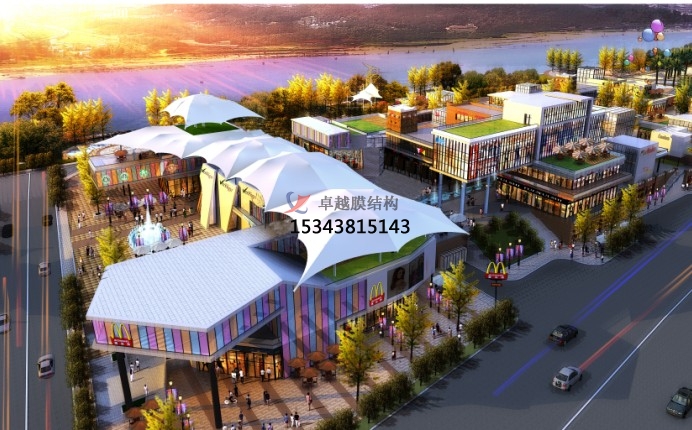 商業(yè)街膜結(jié)構(gòu)概念以及有何特點?商業(yè)膜結(jié)構(gòu)顧名思義是膜結(jié)構(gòu)應(yīng)用于商業(yè)中心的一種建筑,其實生活中我們可能已經(jīng)看到了,僅僅是因為對這種建筑不太了解,所以不認識而已。商業(yè)街是人流聚集的一個主要場所。采用東西方向排列,以入口為中軸對稱布局,建筑立面多采用塔樓,騎樓,雨罩的元素使空間產(chǎn)生新的劃分,室內(nèi)空間既設(shè)置了集中商業(yè),又有零散店鋪,是西方現(xiàn)代MALL與中國傳統(tǒng)商鋪的有機組合。