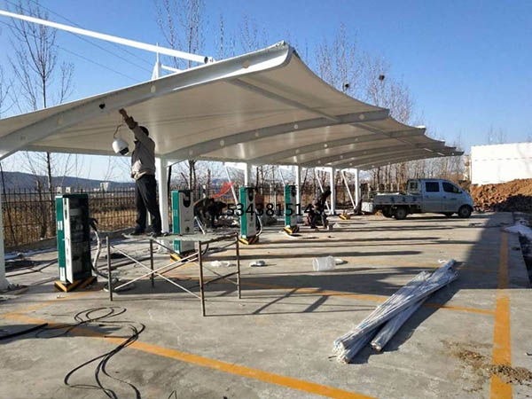《膜結構充電樁車棚施工圖片》