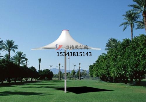 從結(jié)構(gòu)方式上大致可分為骨架式、張拉式、充氣式景觀膜結(jié)構(gòu)遮陽棚3種形式??诤Q笫澜缛肟诰坝^膜結(jié)構(gòu)遮陽棚。