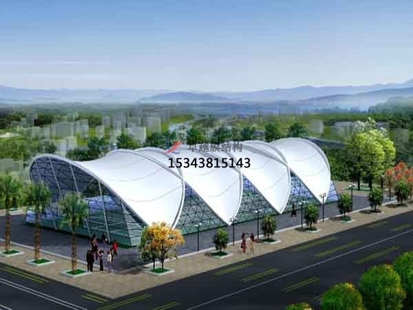膜結構罩棚膜材一種新興的建筑材料,已被公認為是繼磚、石、混凝土、鋼和木材之后的"第六種建筑材料"。膜材本身不能受壓也不能抗彎,所以要使膜結構正常工作就必須引入適當的預張力。此外,要保證膜結構正常工作的另一個重要條件就是要形成互反曲面。傳統結構為了減小結構的變形就必須增加結構的抗力;而膜結構是通過改變形狀來分散荷載,從而獲得更小內力增長的。當膜結構在平衡位置附近出現變形時,可產生兩種回復力:一個是由幾何變形引起的;另一個是由材料應變引起的。通常幾何剛度要比彈性剛度大得多,所以要使每一個膜片具有良好的剛度,