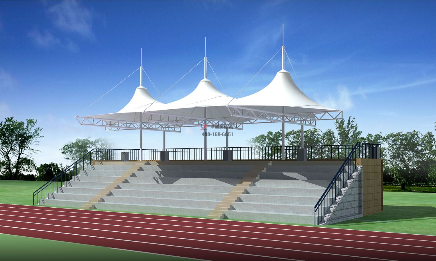 張拉膜看臺主要用于各類地方體育場主席臺雨棚,各類學校體育場看臺雨棚遮蓋,我公司是國內較早從事大懸挑張拉膜結構看臺設計施工的專業廠家,下面介紹一下我們在菏澤市周邊縣市完工的一些張拉膜看臺設計施工案例,我公司先后在菏澤周邊承接了菏澤學院張拉膜看臺雨棚、菏澤職業學院張拉膜看臺罩棚、菏澤信息答工程學校張拉膜看臺遮陽棚等設計施工項目,簡介如下: