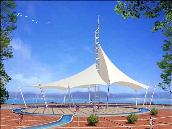 6、景觀膜結構不僅能夠根據園林景觀的實際情況設計出能夠跟自然景觀和諧一體的造型,重要的是還能提供豐富多彩的用途,讓人賞心悅目,景觀膜結構充分展示了結構構件清晰受力的藝術之美,配合周圍景色創(chuàng)造出一種現代與自然結合的感覺;