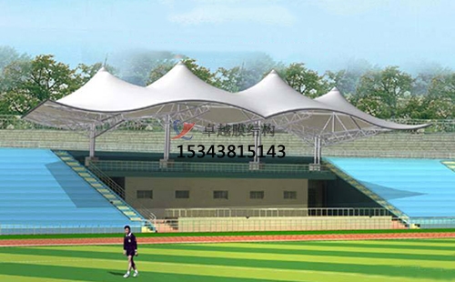 膜結(jié)構(gòu)看臺(tái)造型美觀大方,空間跨度大。更好的體現(xiàn)了膜結(jié)構(gòu)建筑空間跨度的優(yōu)勢(shì),而且施工周期短。