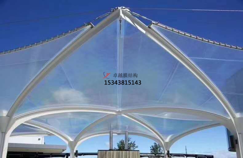 膜結構車棚一改傳統建筑材料而使用膜材,其重量只是傳統建筑的三分之一,而且膜結構車棚可以從根本上克服傳統大跨度建筑上所遇到的困難,可創造巨大的無遮擋的可視空間。膜結構車棚特點是強度高、耐久性好、防火難燃、透光性好、自潔性好,跨度可以超過兩百米,不受紫外線影響,使用壽命長,一般15-30年。