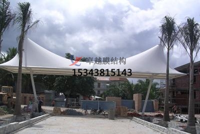 2、景觀膜結構是目前發展很快的一種新型空間結構,是一種效率極高的張力集成體系,可以充分發揮鋼索的強度與張拉整體結構的空間作用。它通過鋼骨架、鋼索與膜材共同受力形式穩定曲面來覆蓋建筑空間,具有高度的形體可塑性和結構靈活性,即通過對膜材內部施加一定的預張力,使其具備了抵抗外荷載能力,從而充當結構材料的一種結構體系。我公司先后在池州地區承接了池州百荷公園景觀、皋城中心廣場景觀、池州萬達廣場景觀小品的設計施工,簡介如下: