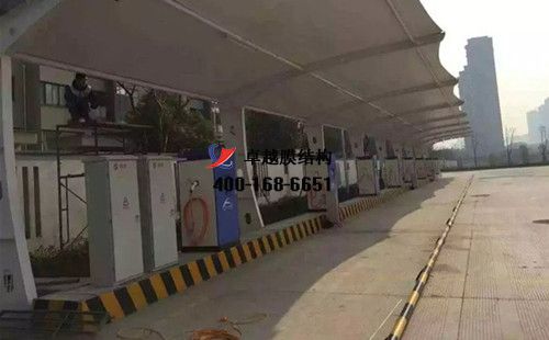 膜結構充電站樁車棚設計、施工案例,我們在鄂州承接了鄂州客運站、鄂州市公共交通總公司、鄂州市潤升新能源有限公司