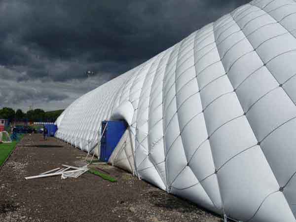 空間,并在氣膜表面形成巨大的張力。即使有漏風,也不會倒塌。氣膜樓上層建筑離地面約需30分鐘,距離地面約2米,且有足夠的時間確保氣膜貯